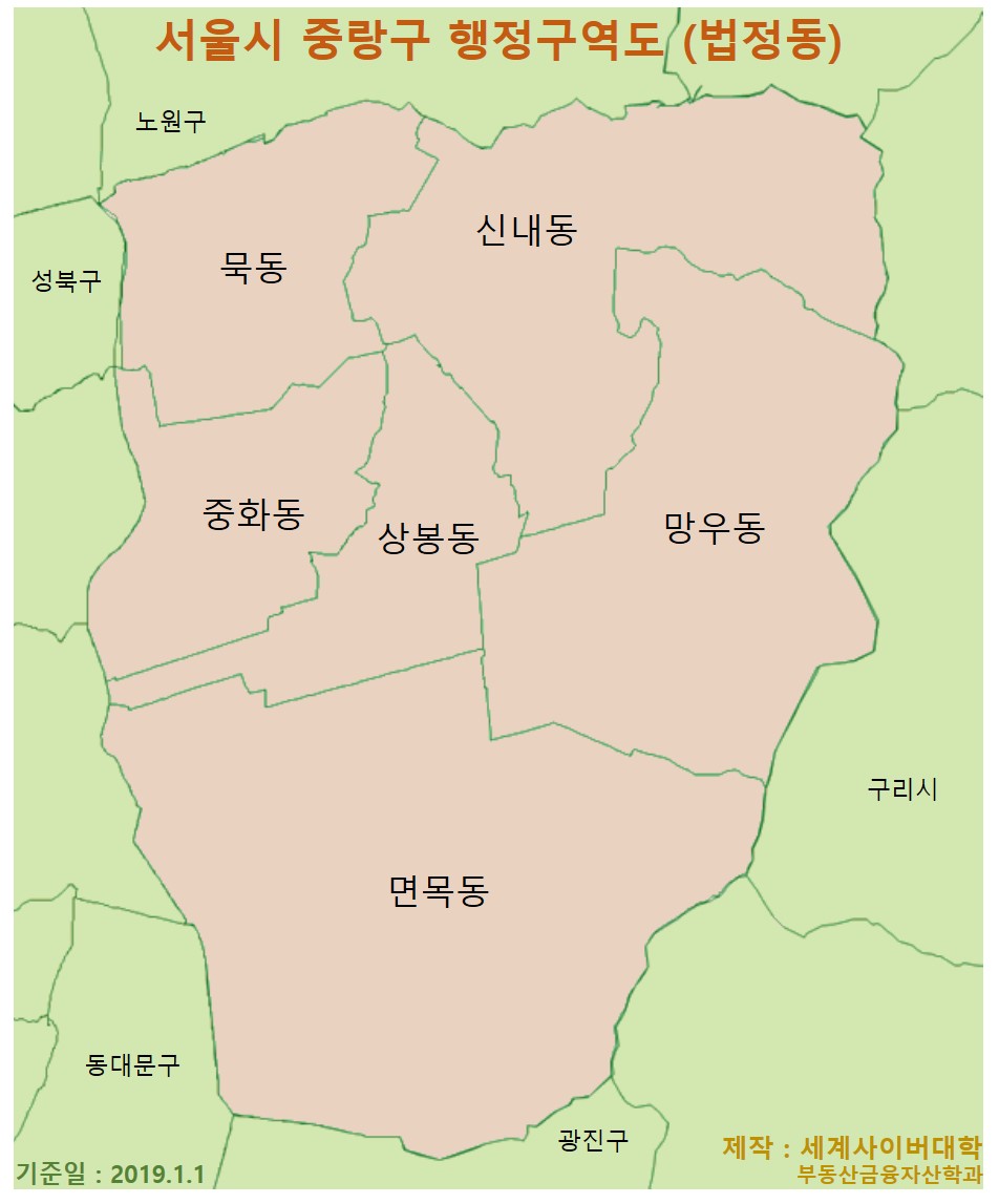 서울시 중랑구 동별 다가구주택 가격 수준 및 전국 순위 - 2021년