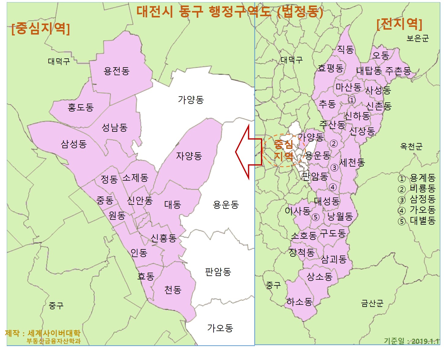 [ 표 ] 대전시 동구 동별 아파트 시장 현황 (2020.1.1 기준)