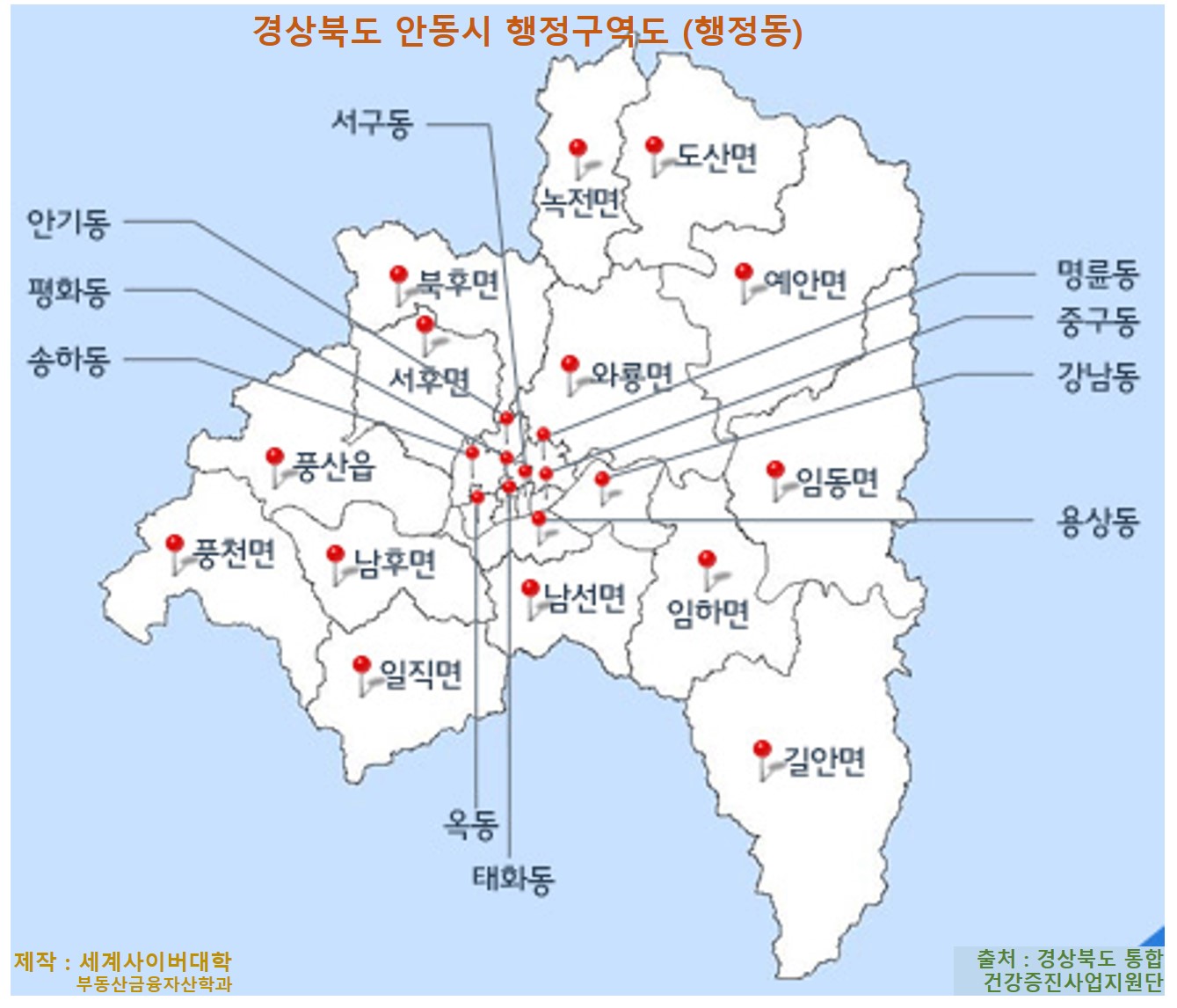 이 부동산정보는 세계사이버대학 부동산금융자산학과 수업 과정에 포함된 부동산투자 실무 중 부동산시장 분석(지역분석) 등에 활용할 목적으로 작성한 것이며, 표에 포함된 각 지역의 위치는 첨부된 행정구역도에서 확인 할 수 있습니다. 기타 각 지역별 아파트 현황이나 최고가 등은 본 블로그 “지역아파트현황”에 별도로 수록할 예정이며, 표의 해석과 관련된 상세한 참고자료는 본 블로그 기초자료 메뉴에서 찾아볼 수 있습니다.