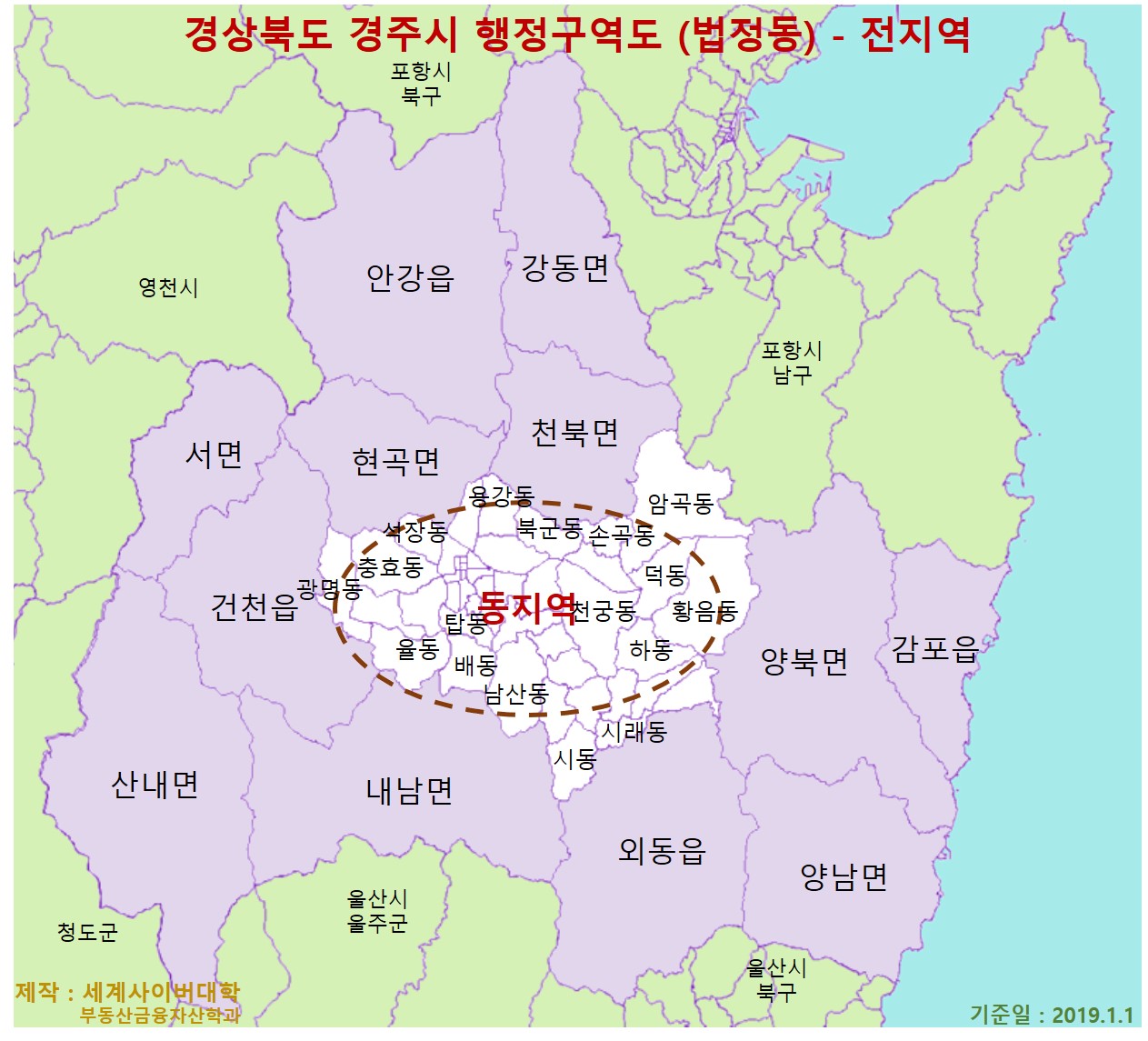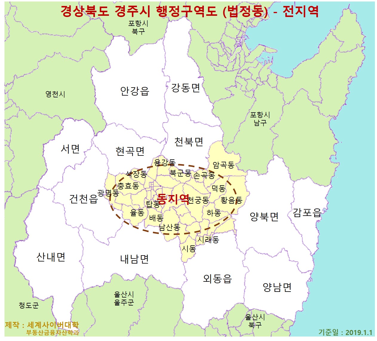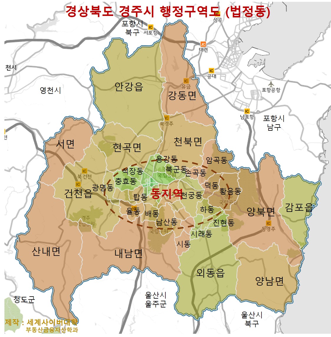 2020년 1월 1일 현재 경상북도 경주시의 아파트가 있는 23개 읍면동별 (법정동) 아파트 중 가장 비싼(공시가격이 가장 높은) 아파트 목록입니다 (단가가 가장 높은 아파트는 앞 정보 참조). 아래 경북 경주 지역 현황표는 한국감정원에서 조사하여 국토교통부장관이 공표한 2020년 공동주택공시가격 정보(166,264,845건)을 분석하여 작성한 것으로, 부동산투자나 감정평가, 중개 활동 등을 위한 아파트 시장분석에 활용할 수 있습니다. [ 표 ] 경상북도 경주시 읍면동별 (법정동) 공시가격이 가장 높은(가장 비싼) 아파트 (2020.1.1 기준) 지역명 공시가격 (만원) 지번 아파트단지 전용면적 (㎥) 동일 금액 세대수 구정동 6,010 399 번지 한미하나로타운 85.00 12 노서동 12,600 12..