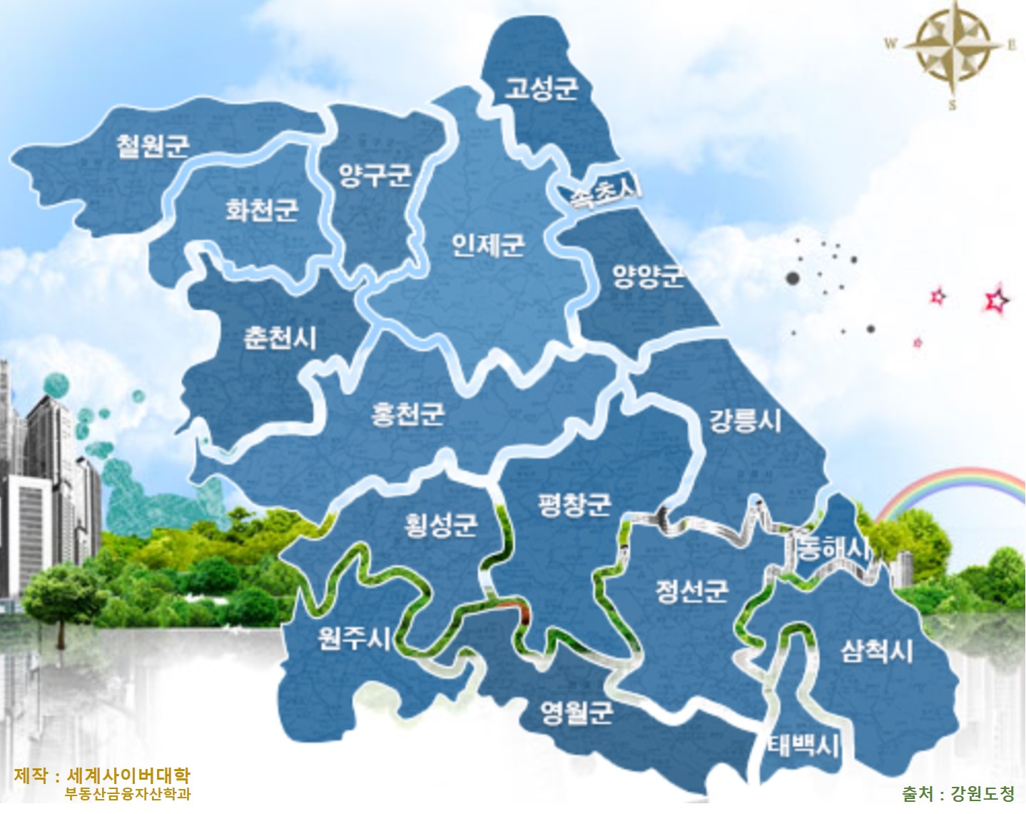 2021년 1월 1일 현재 강원도 18개 시군별 아파트 중 가장 비싼(공시가격이 가장 높은) 아파트 목록입니다 (단가가 가장 높은 아파트는 앞 정보 참조). 아래 강원 지역 현황표는 한국감정원에서 조사하여 국토교통부장관이 공표한 2021년 공동주택공시가격 정보(180,668,391건)을 분석하여 작성한 것으로, 부동산투자나 감정평가, 중개 활동 등을 위한 아파트 시장분석에 활용할 수 있습니다. [ 표 ] 강원도 시군별 공시가격이 가장 높은(가장 비싼) 아파트 (2021년 1월 1일 기준) 지역명 공시가격 (만원) 주소 아파트단지 동, 층, 호 명칭 전용면적 (㎥) 동일 금액 세대 수 강릉시 51,000 교동 1982 강릉교동롯데캐슬1단지 103동 15층 1505 244.96 4 동해시 24,500 동회동..