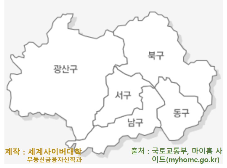 2021년 1월 1일 현재 광주광역시 5개 구별 표준주택 중 주상용건물의 동당 평균 공시가격 수준 및 순위 표입니다. 광주 지역 주상용건물 가격수준은 국토교통부장관이 감정평가사에게 의뢰하여 산정된 전국 23만 동의 표준주택 가격 정보에 근거하여 작성한 것입니다. [ 표 ] 지역별 주상용건물 평균 공시가격(단위 : 만원, 동, ㎡) 지역명 동당 공시가격 (만원) 가격 순위 공시 주상용건물 동수 대지 평균 면적 (㎡) 건물 평균 연면적 (㎡) 건물 ㎡당 공시가격 (만원) 시도안 전국 광산구 21,944 1 68 147 274.9 361.9 60.6 남구 10,849 5 146 132 180.4 288.8 37.6 동구 11,528 3 138 152 181.2 385.7 29.9 북구 11,332 4 141 ..