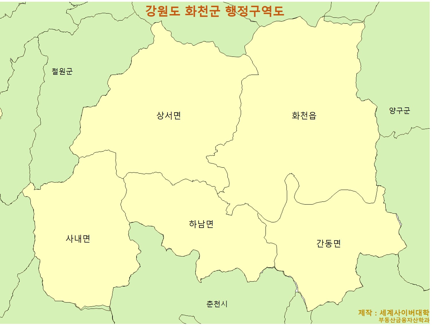 2020년 1월 1일 현재 강원도 화천군의 아파트가 있는 3개 읍면별 아파트 중 가장 비싼(공시가격이 가장 높은) 아파트 목록입니다 (단가가 가장 높은 아파트는 앞 정보 참조). 아래 강원 화천 지역 현황표는 한국감정원에서 조사하여 국토교통부장관이 공표한 2020년 공동주택공시가격 정보(166,264,845건)을 분석하여 작성한 것으로, 부동산투자나 감정평가, 중개 활동 등을 위한 아파트 시장분석에 활용할 수 있습니다. [ 표 ] 강원도 화천군 읍면별 공시가격이 가장 높은(가장 비싼) 아파트 (2020.1.1 기준) 지역명 공시가격 (만원) 지번 아파트단지 전용면적 (㎥) 동일 금액 세대수 사내면 2,860 사창리 746 로얄 59.98 12 하남면 13,700 용암리 1142-11 대양 84.97 40..