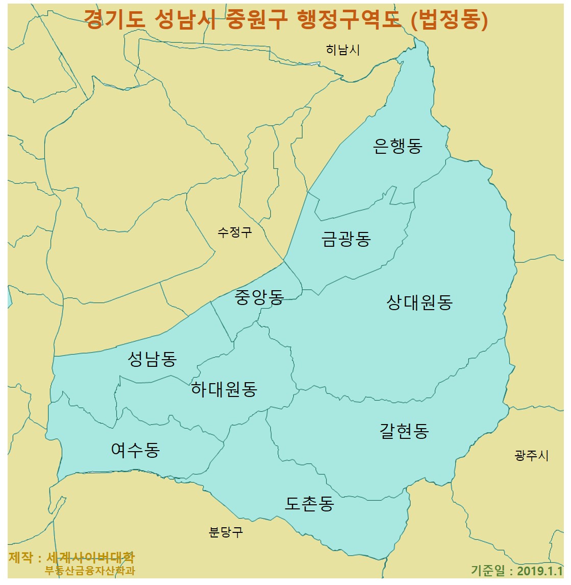국세청에서 기준시가를 고시한 경기도 성남시 중원구 소재 오피스텔 건물 기준시가 정보를 활용해 추출한 경기도 성남시 중원구 읍면동별 오피스텔 고시가격 정보 중 가장 높은 가격(최고가)의 오피스텔에 대한 정보입니다. 이들 정보는 국세청에서 제공하는 2020년 상업용건물 및 오피스텔 기준시가 정보에 수록된 1,443,701건(상가 570,483건)의 정보 중 경기성남중원 소재 오피스텔건물 (복합용건물 포함)에 대해 분석한 결과이며, 각종 오피스텔의 매매나 임대차, 기타 부동산시장 분석 등에 활용될 수 있습니다. [표] 경기도 성남시 중원구 읍면동별 오피스텔 기준시가 최고가 (가장 높은 가격) 목록 지역명 최고 고시가격 (원/㎡) 주소 건물명 및 동ㆍ호 주소 전용면적 (㎡) 공용면적 (㎡) 동일 가격 호수 금광..
