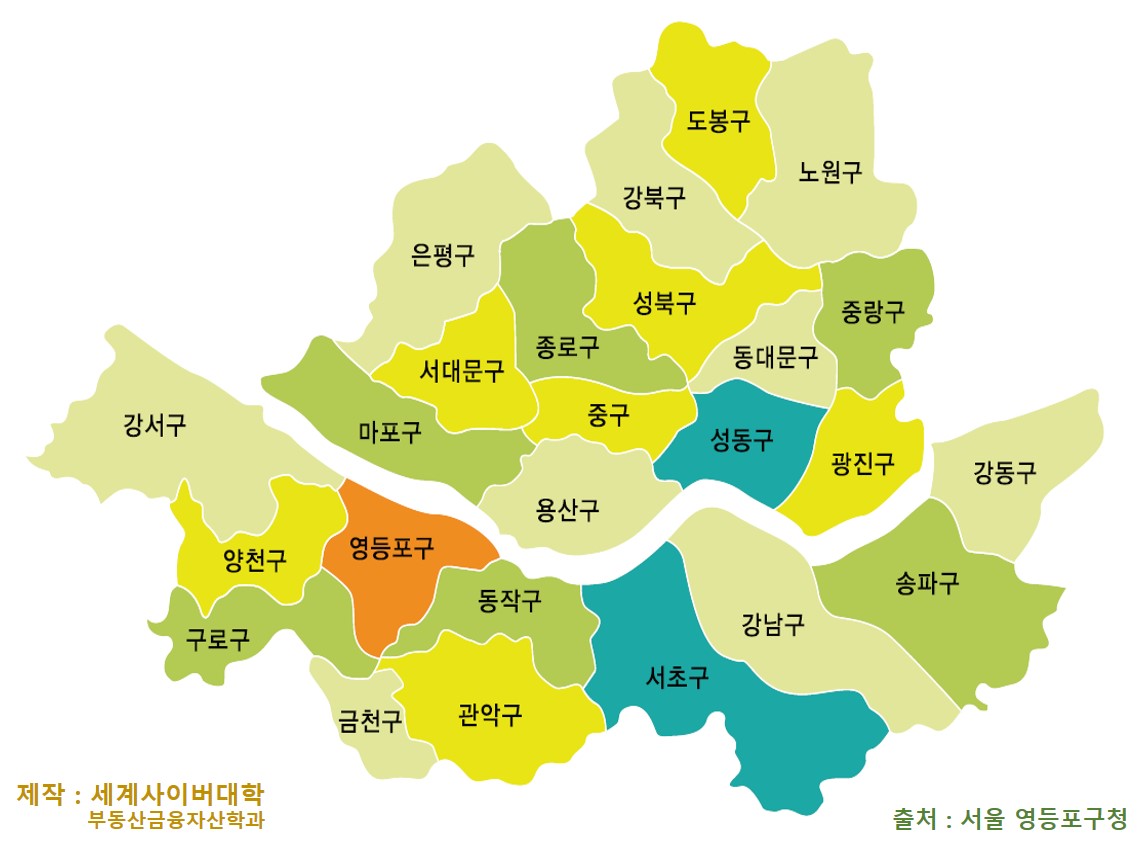 2021년 1월 1일 현재 서울특별시의 25개 구별 건물 중 가장 높은 층수 건축물(최고층 건축물)의 정보 목록입니다. 서울 지역 건물 정보는 국토교통부에서 제공하는 건축물대장 표제부 정보 (2021년 1월 기준)에 수록된 7,837,517건의 정보를 분석한 결과입니다. 이들 정보는 부동산시장 분석(지역분석)이나 감정평가 등에 활용 할 수 있으며, 표에 포함된 각 지역의 위치는 첨부된 행정구역도에서 확인 할 수 있습니다. [ 표 ] 서울시 구별 가장 높은 층수 건물(빌딩)의 위치와 면적 지역명 층수 주소 건물명 용도 신축연도 연면적 (㎡) 동일층수동수 강남구 69 도곡동 467-29 타워팰리스 지동 공동주택 2004 195,058 1 강동구 45 천호동 571 래미안강동팰리스 103동 공동주택 2017 ..