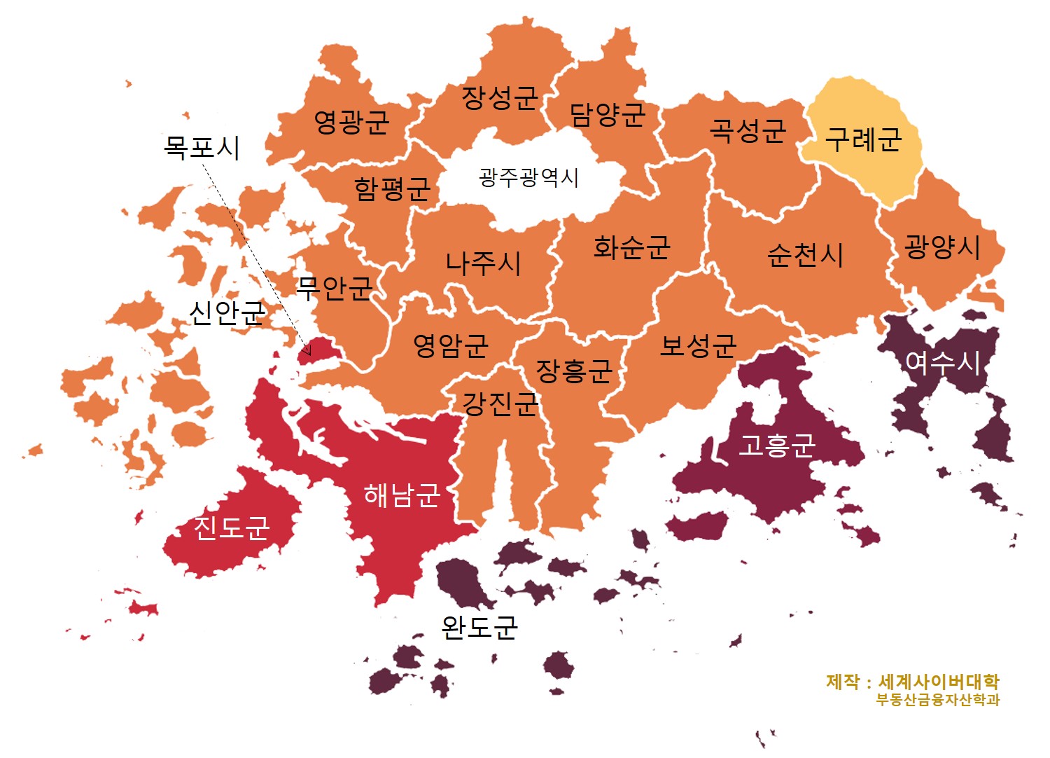 2021년 1월 1일 현재 전라남도에 있는 건물 중 가장 큰 건물(지하층 등을 제외한 용적율 산정 연면적이 가장 넓은 건물) 상위 100동의 정보 목록입니다. 전남 지역 건물 정보는 국토교통부에서 제공하는 건축물대장 표제부 정보 (2021년 1월 기준)에 수록된 7,837,517건의 정보를 분석한 결과입니다. 이들 건축물 정보는 부동산시장 분석(지역분석)이나 감정평가 등에 활용 할 수 있으며, 표에 포함된 각 지역의 위치는 첨부된 행정구역도에서 확인 할 수 있습니다. [ 표 ] 전라남도에서 가장 큰(넓은) 건물(빌딩)의 위치와 면적 순위 적용 연면적 (㎡) 주소 건물명 용도 층수 신축연도 1 296,492 광양시 금호동 864 광양제철 후판본공장 공장 4 2010 2 284,802 광양시 금호동 640 ..